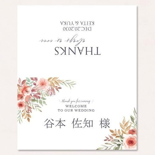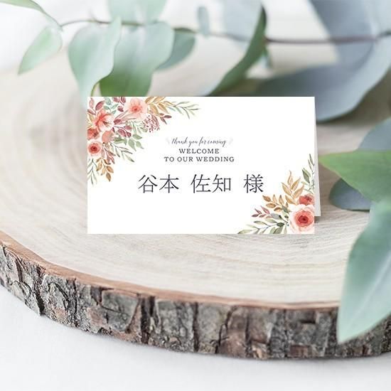 席札 結婚式 二つ折り 水彩画フラワー ゲスト名印刷込み 10部からOK